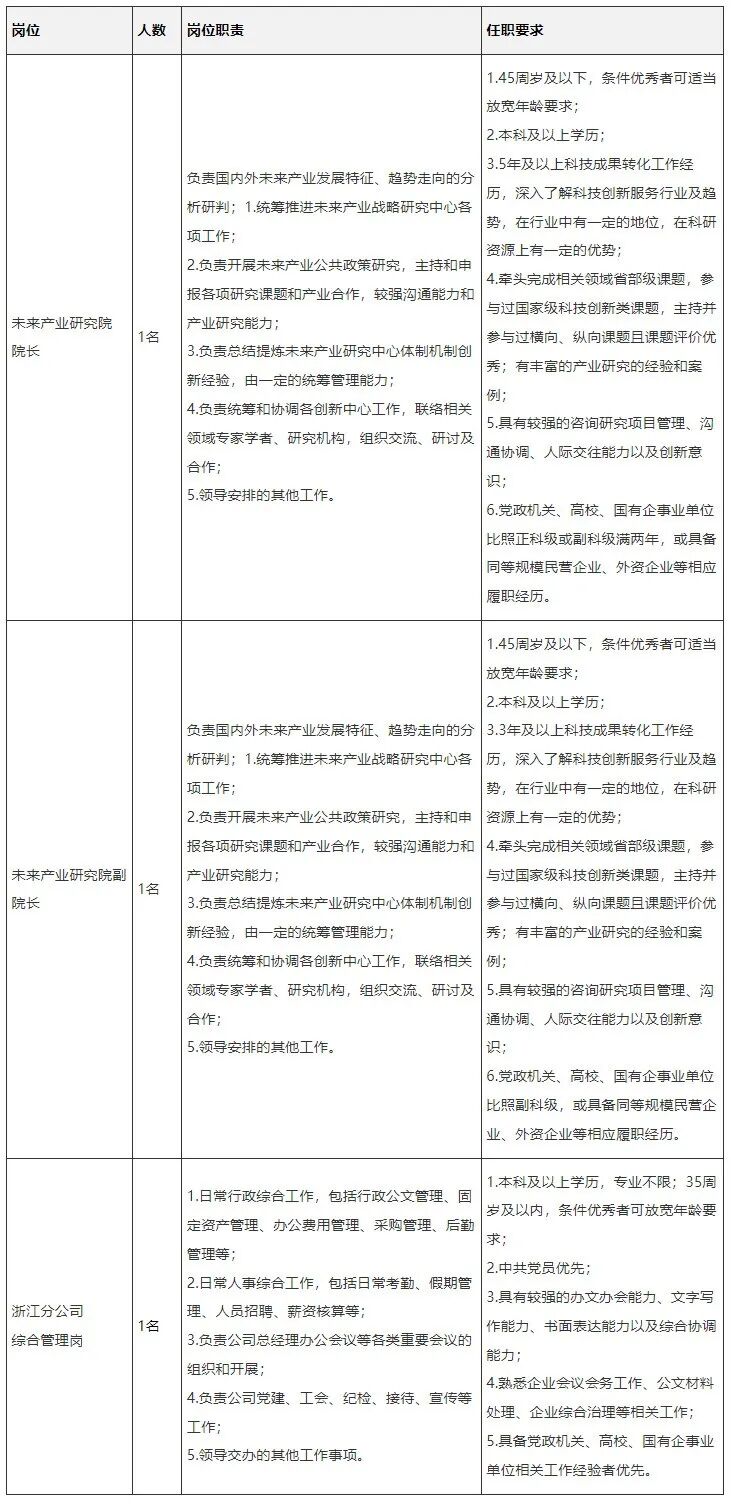 因公司业务拓展需要,浙江大学科技园发展有限公司浙江分公司拟面向社会公开招聘相关人员,现就有关事项公告如下: