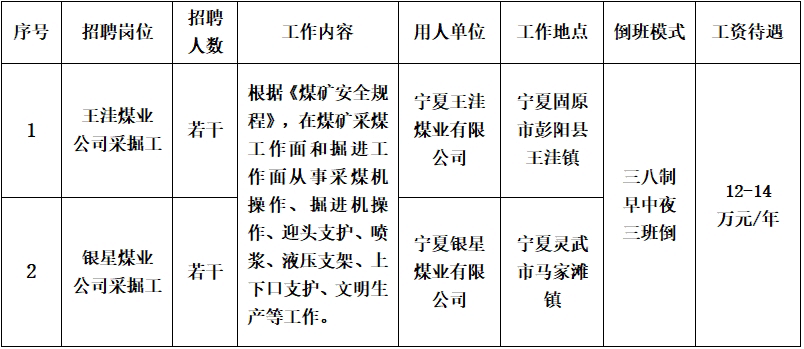根据企业发展需要,面向社会公开招聘煤矿井下采掘操作工,具体招聘事宜如下: