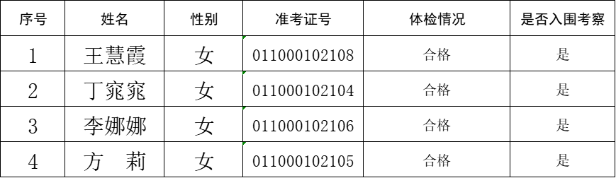 根据《丽水市国有企业面向驻丽部队军人随军家属公开招聘工作人员公告》有关规定,现将体检合格及入围考察人员予以公示。