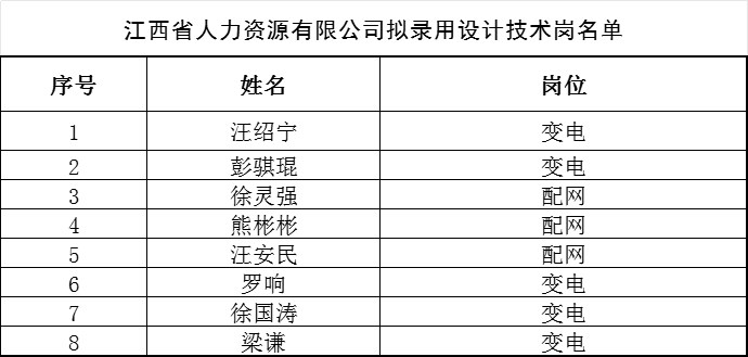 根据2024年度《江西省人力资源有限公司设计技术岗招聘》安排,经报名、资格审查、笔试、面试等程序,现将拟录用人员名单予以公示, 公示期间,如有问题,请向我公司反映。