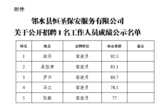 附件:邻水县恒圣保安服务有限公司关于公开招聘1名工作人员成绩公示名单