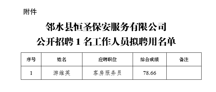 附件:邻水县恒圣保安服务有限公司公开招聘1名工作人员拟聘用名单