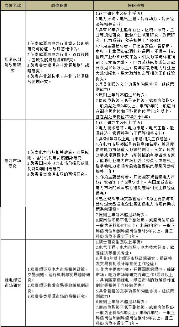 根据工作需要,现面向国家电投系统外选聘经研院3个岗位。具体事项公告如下: