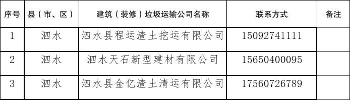 2024年济宁市泗水县建筑(装修)垃圾运输公司公示