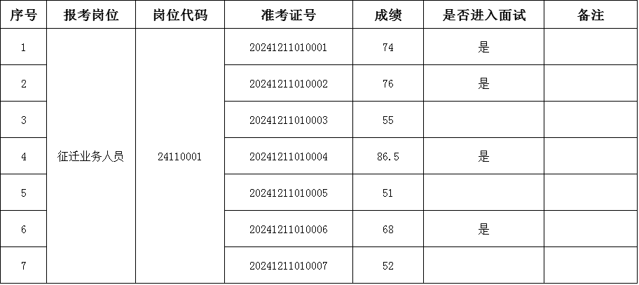 厦门禾丰房屋征迁服务有限公司2024年(11月)招聘笔试成绩单