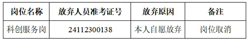 根据《安徽省人工智能产业投资发展有限公司2024年下半年社会招聘公告》的规定,对体检、考察环节出现缺额,公司可经会议研究,按规定程序和时限放弃递补,取消该岗位的招聘。现将取消岗位的相关事项通知如下: