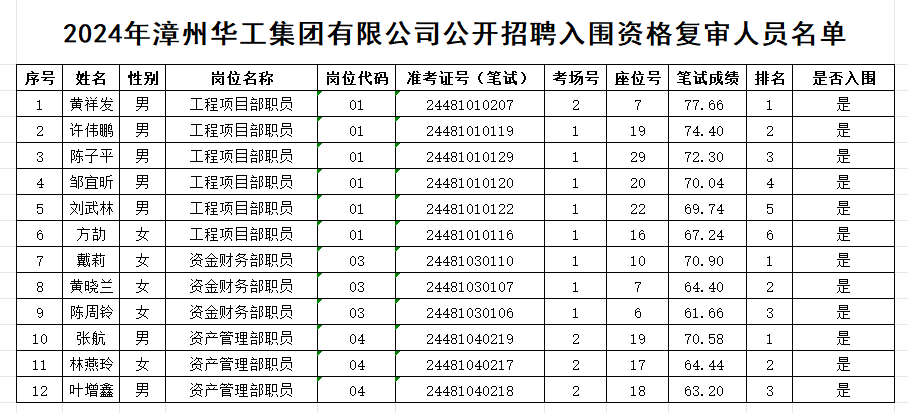 报考2024年漳州华工集团有限公司公开招聘入围面试的考生。