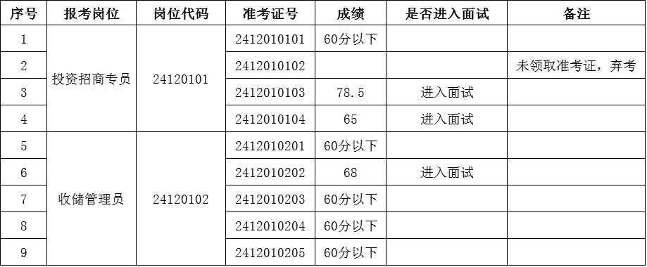 厦门市湖里区国有资产投资集团有限公司2024年(12月)招聘笔试成绩单