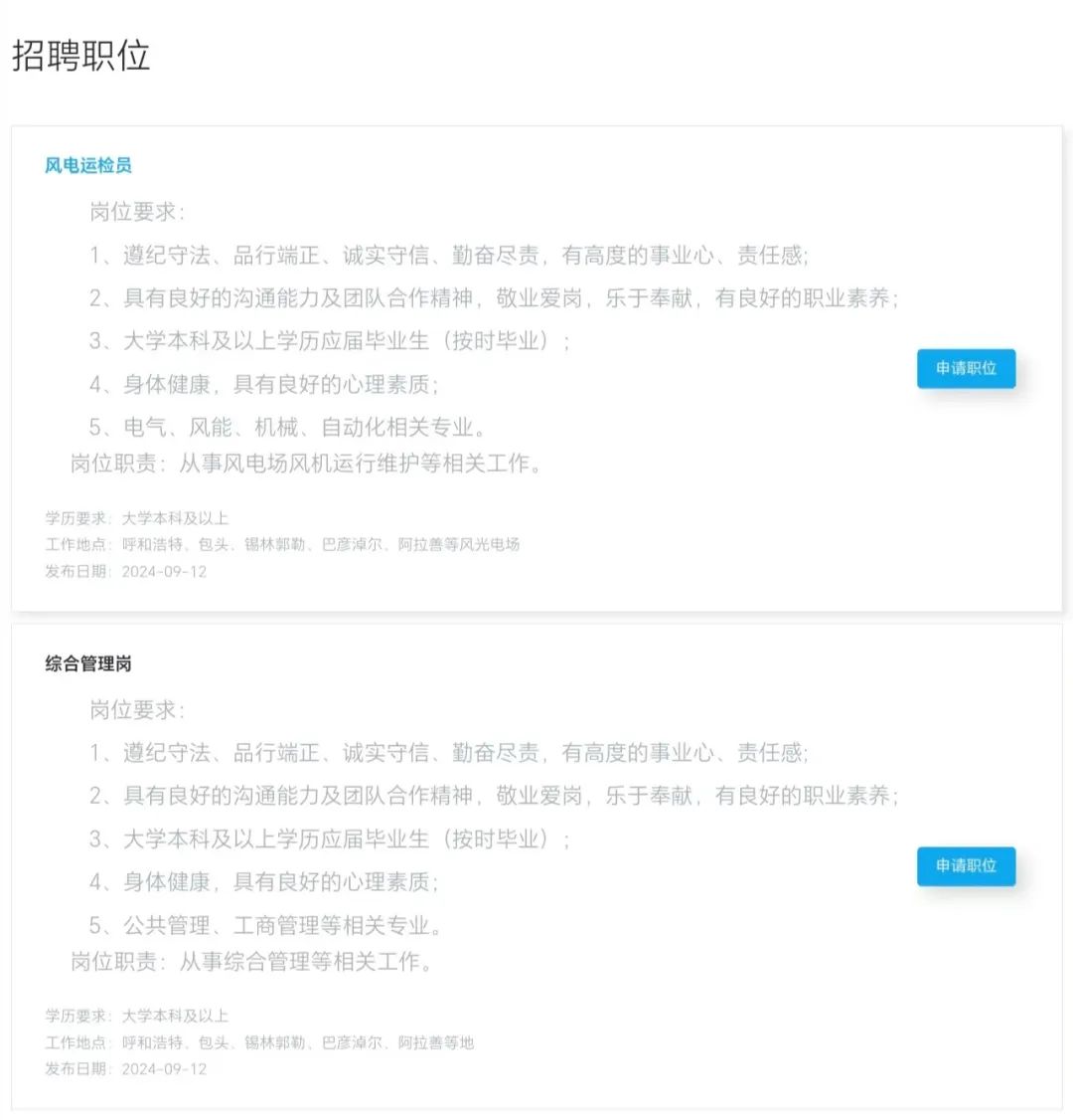 风电运维岗、综合管理岗。