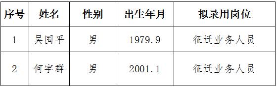 11月招聘拟录聘工作人员公示名单