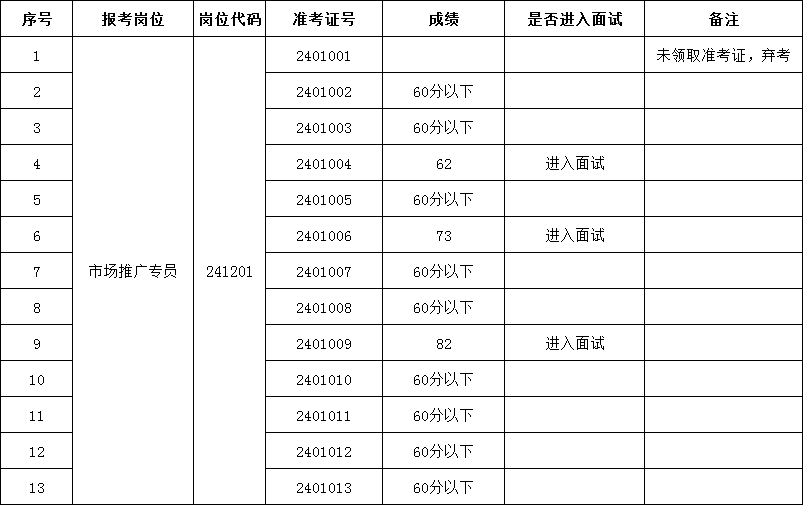 厦门五缘湾文体旅发展有限公司2024年(12月)招聘笔试成绩单