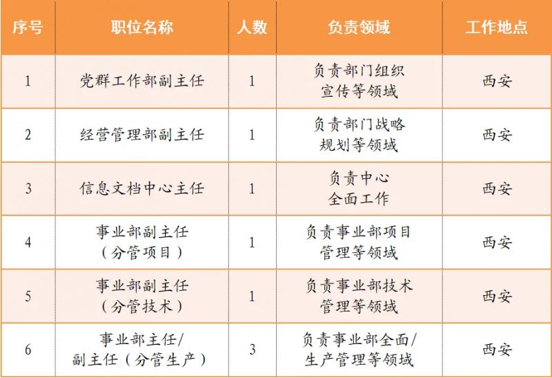 详见附件1《西安核设备有限公司公开招聘干部职位职责与任职资格一览表》。