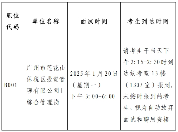 广州市莲花山保税区投资管理有限公司关于市场寻聘相关岗位的报名已结束,现将面试安排的有关事项通知如下:
