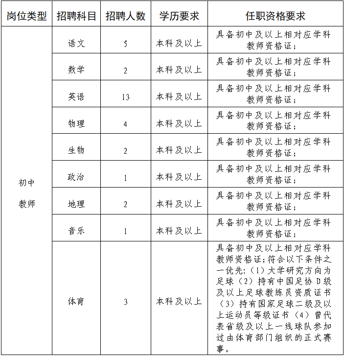 (八)具有语文、数学、英语、政治、地理、物理、生物、音乐、体育教师资格证;