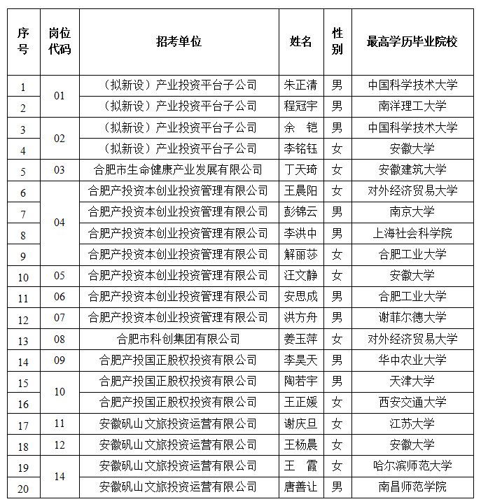 根据《合肥市产业投资控股(集团)有限公司2025校园招聘公告》及《合肥产投集团员工招聘管理办法》规定,经笔试、面试、体检和考察等程序,现将拟录用人员名单进行公示,公示时间从1月22日至1月27日。