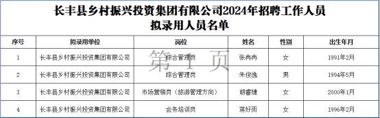 附:长丰县乡村振兴投资集团有限公司2024年招聘工作人员拟录用人员名单