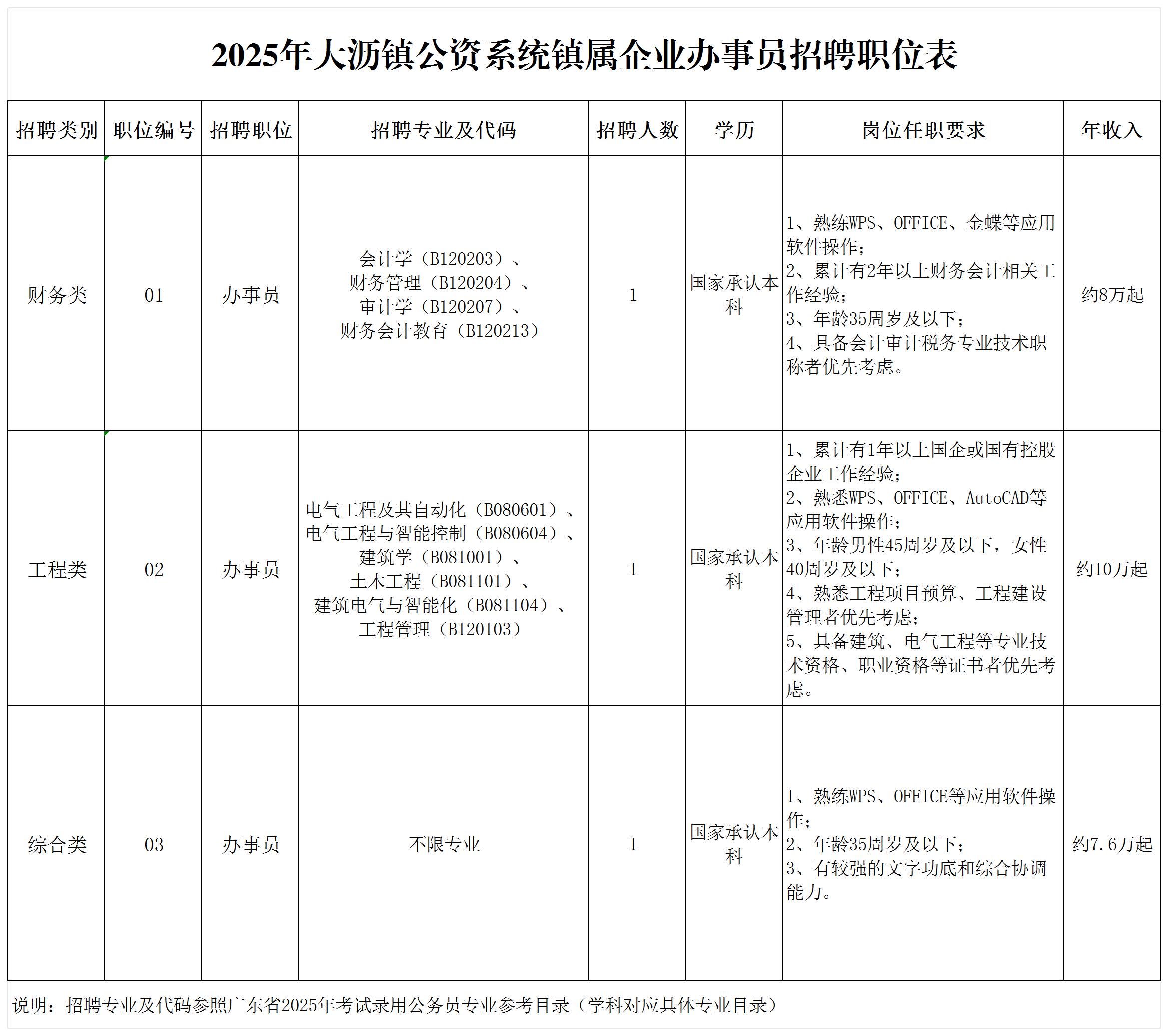 附件1: 2025年大沥镇公资系统镇属企业办事员招聘职位表.jpg
