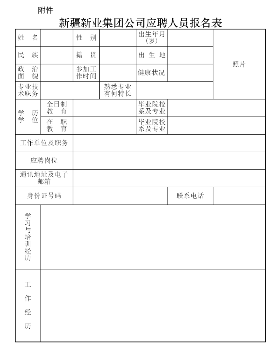 1.《新业集团公司应聘人员报名表》电子版(不接收PDF版)(贴二寸近期正面半身免冠彩色照片);