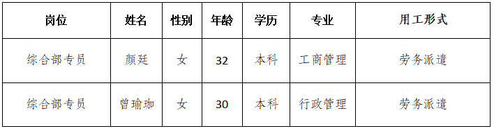 根据泸州市国有资产监督管理委员会《关于市属国有企业委托人才服务中心发布公告的通知》(泸国资委发〔2021〕111号)要求,严格按照《泸州城投融资担保有限公司2024年招聘劳务派遣人员的公告》(2024年10月15日)中规定的招聘程序,因泸州城投融资担保有限公司2名综合部专员派遣人员因个人原因试用期未按期转正,现将该岗位补录用人选予以公示。