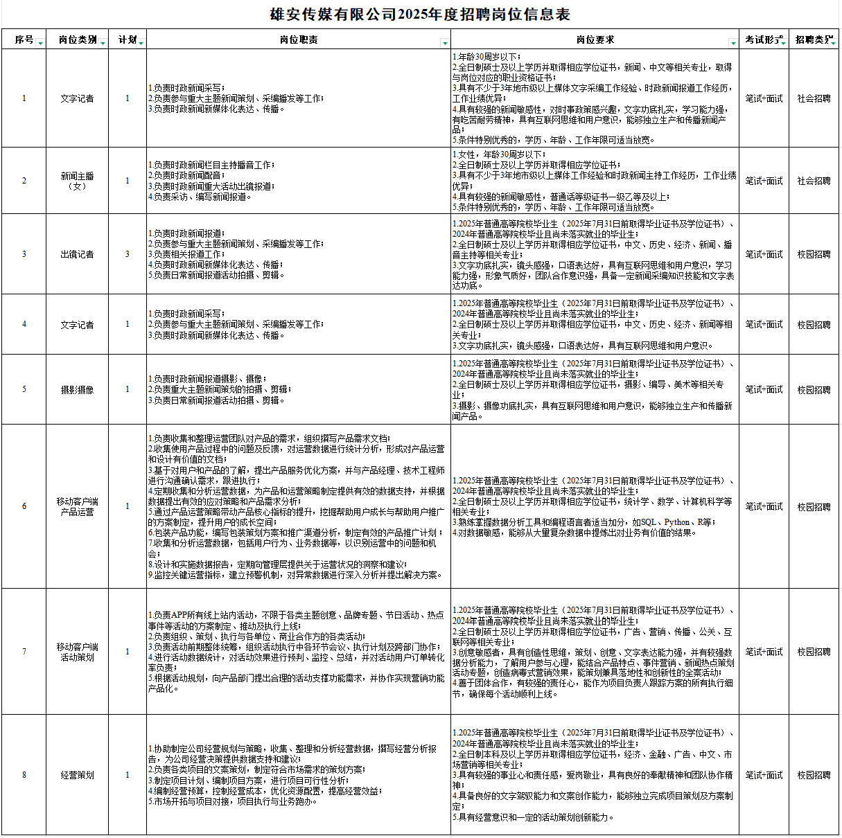 雄安传媒有限公司(以下简称“公司”)为河北雄安新区管理委员会出资的国有独资公司,是具有独立法人资格的国有文化类企业,主要从事信息网络传播、广播电视节目、互联网新闻信息、营业性演出等工作,致力提升新区文化传媒软实力,建设以新闻传媒为主导、弘扬主旋律、融入群众生活的新型主流媒体。