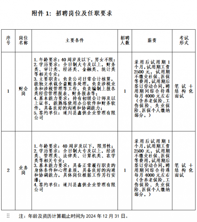 遂川县鑫供企业管理有限公司是遂川县供销社下属企业,主要从事企业管理、商业服务等相关业务,现因工作需要,委托我公司面向社会公开招聘2名工作人员,现将有关事项公告如下: