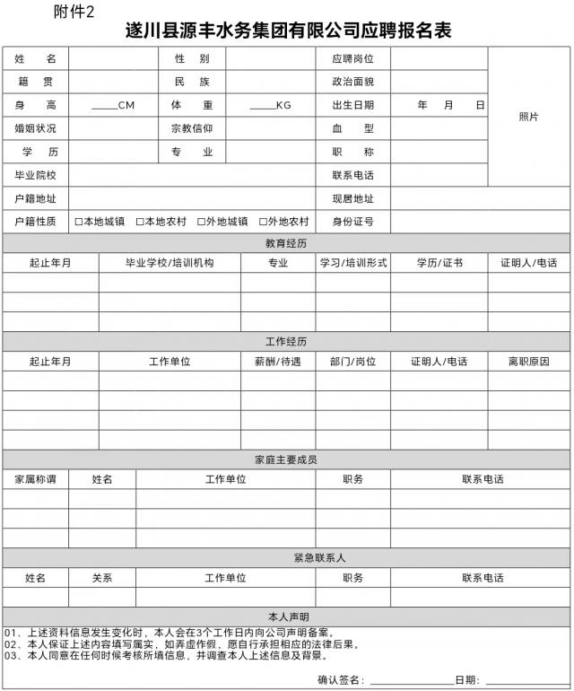 附件2:遂川县源丰水务集团有限公司应聘报名表