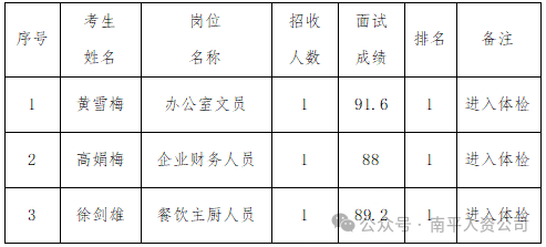 标签: 建瓯市磊石殡葬服务有限责任公司 2025年招聘 面试成绩 拟进入体检人员名单 招聘公示