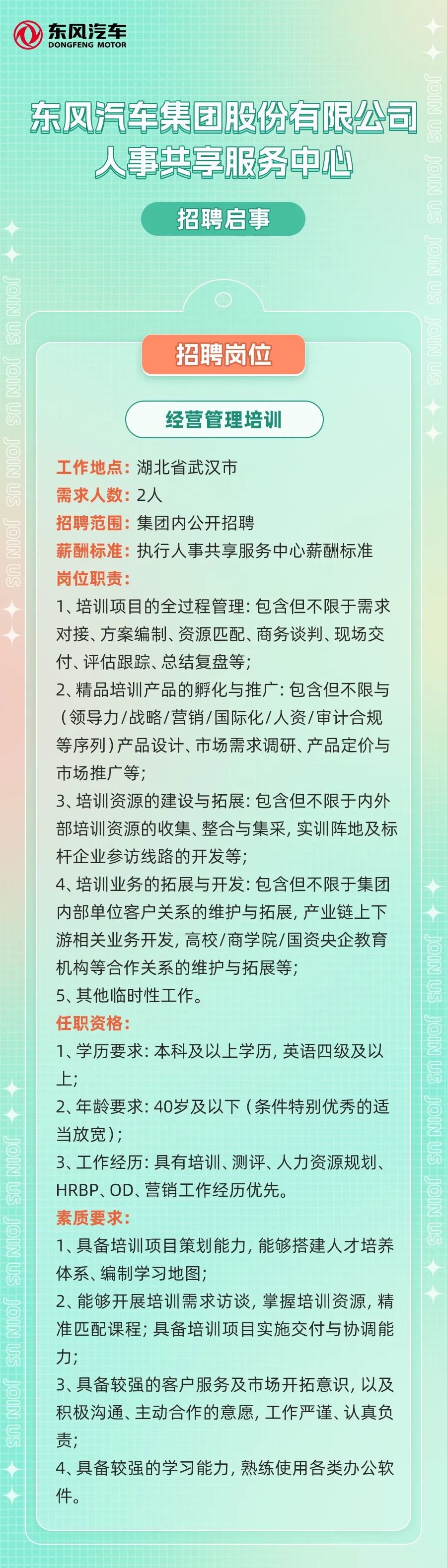 标签: 东风汽车集团股份有限公司 人事共享服务中心 招聘 汽车行业 人才招聘