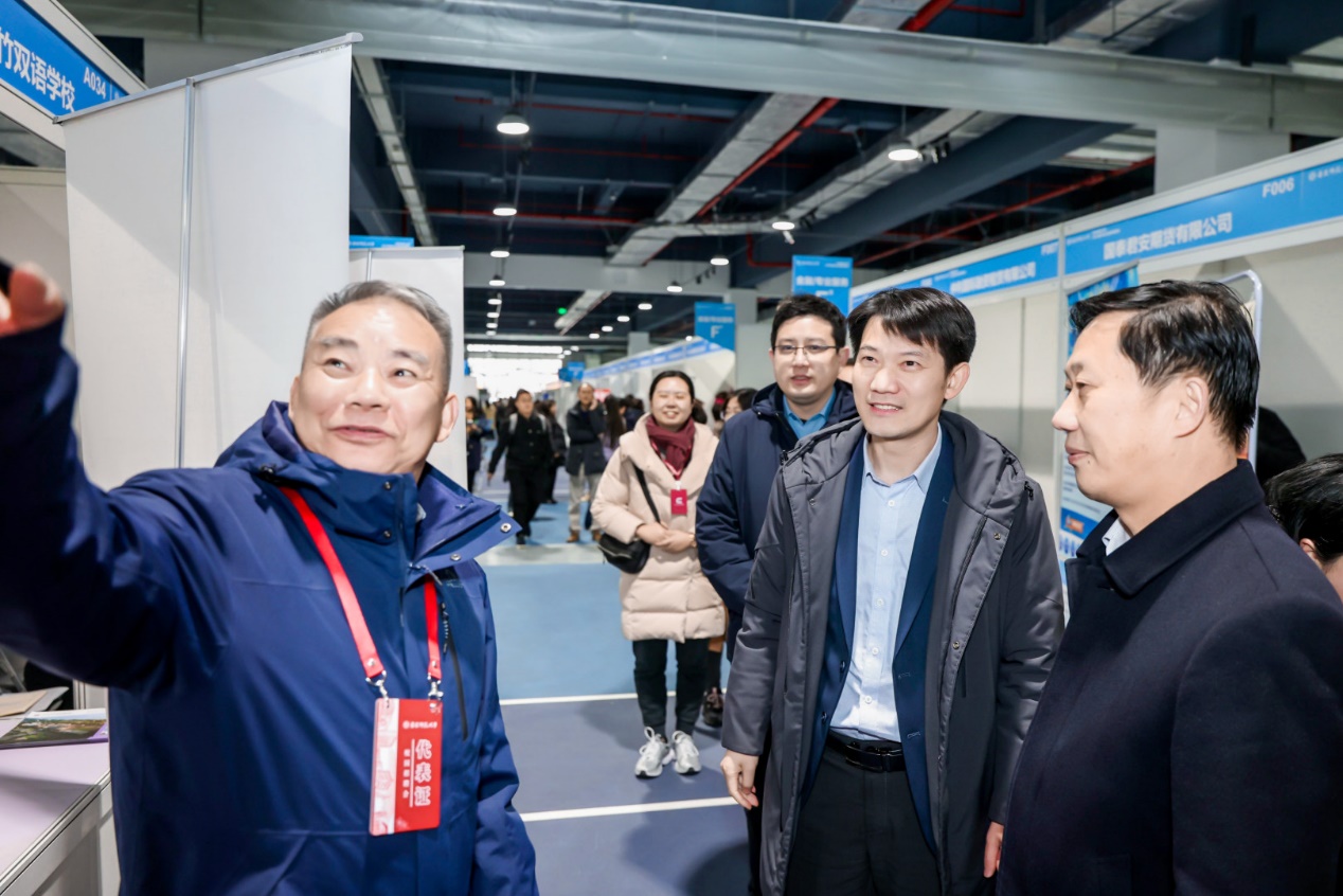 ▲基础教育处处长李志聪、副处长华春燕深入各成员校招聘现场交流