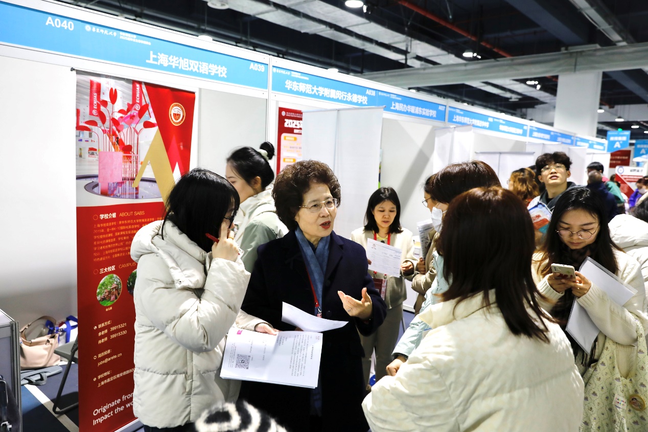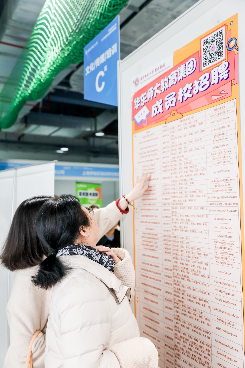 华东师范大学第一附属中学校长袁芳、第二附属中学松江分校校长娄维义、附属周浦中学校长徐凤、附属天山学校校长焦勤、附属枫泾中学校长金贤、上海市民办新华初级中学校长储鹏程、重庆两江新区华师中旭学校校长陈珍国、附属三明中学校长周宁医、华旭双语学校校长龚德辉等多位学校负责人现场参会,与求职者面对面深入交流。