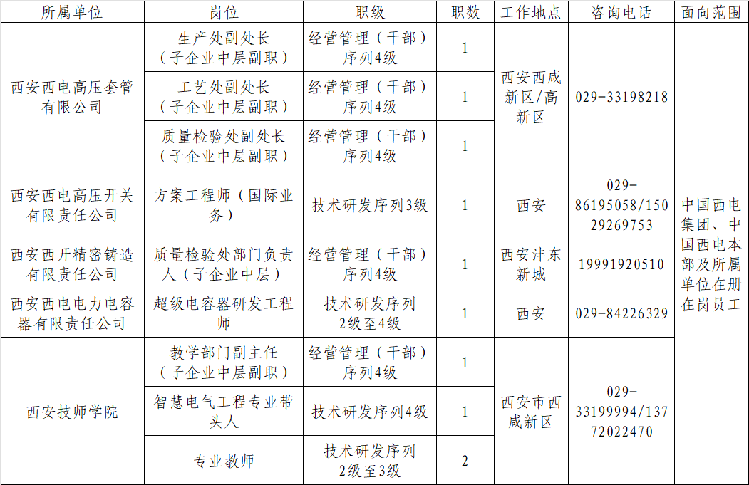 1.应聘人员应为中国西电集团、中国西电本部及所属单位在册在岗员工;