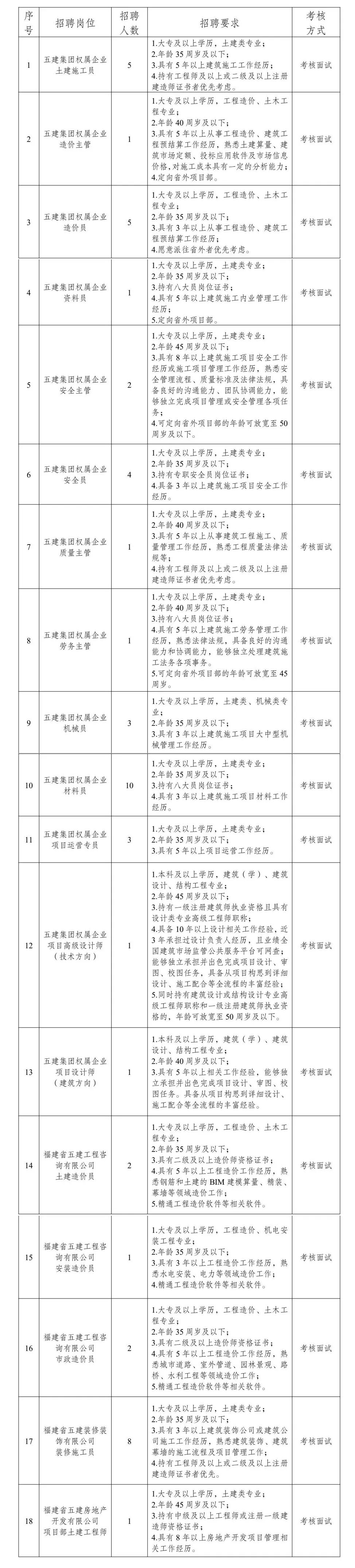 8.本公告仅适用于本次招聘,未尽事宜由福建省五建建设集团有限公司负责解释。