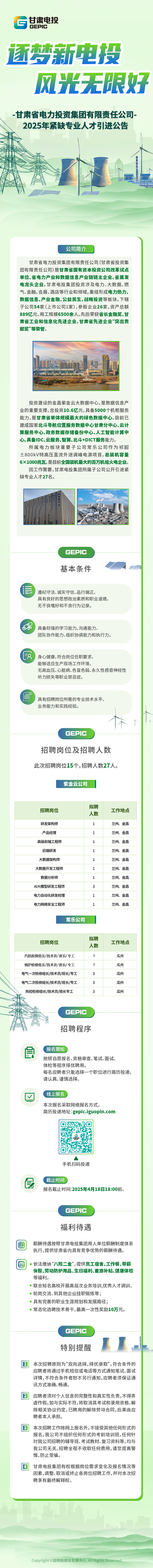 已结束 【合同制】甘肃省电力投资集团有限责任公司2025年紧缺专业人才引进公告(招若干人,04月07日~04月22日报名)