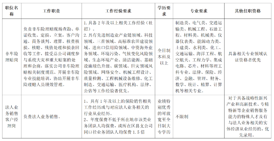附表:非车险理赔岗及法人业务销售客户经理岗招聘标准