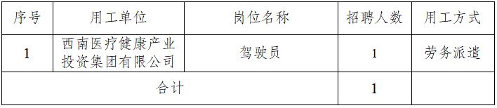 详见《西南医投集团2025年公开招聘驾驶员岗位需求表》(附件1)。