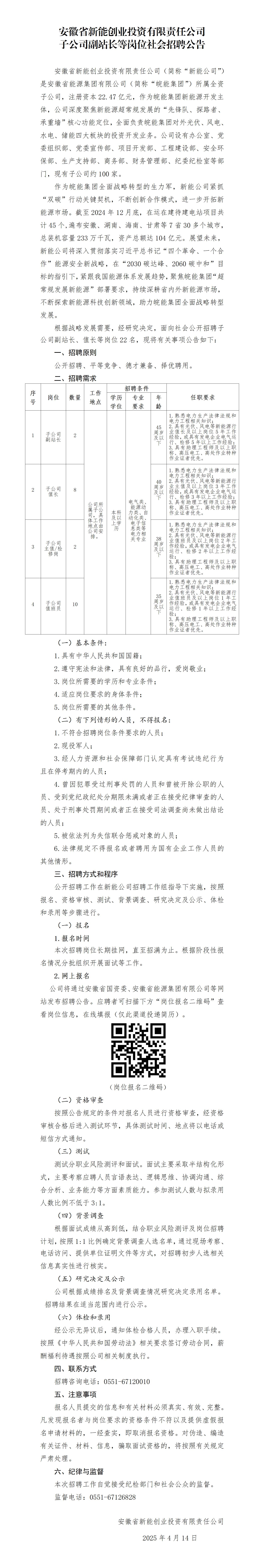 已结束 【合同制】安徽省新能创业投资有限责任公司子公司副站长等岗位社会招聘公告(招若干人,04月14日~04月29日报名)
