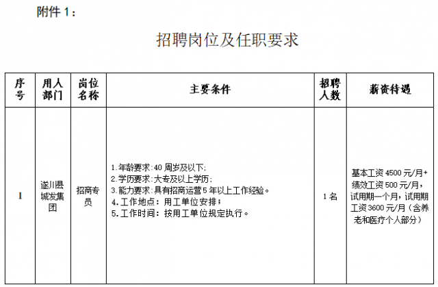 遂川县城发集团下属的遂川县城控人力资源管理有限公司成立于2022年12月,主营人力资源服务相关业务。因公司业务发展需要,特面向社会公开招聘1名招商专员,现将有关事项公告如下: