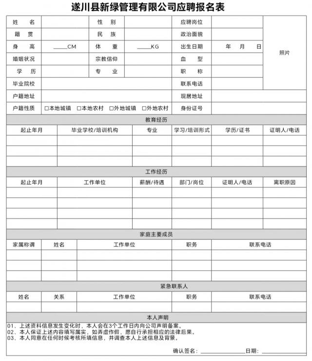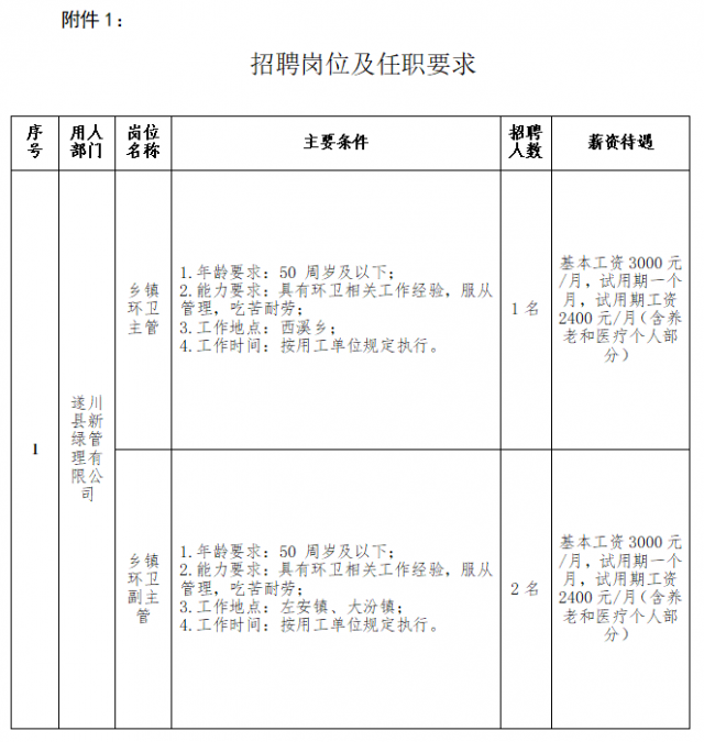 遂川县城发集团下属的遂川县城控人力资源管理有限公司成立于2022年12月,主营人力资源服务相关业务。因公司业务发展需要,特面向社会公开招聘3名乡镇环卫管理人员,现将有关事项公告如下: