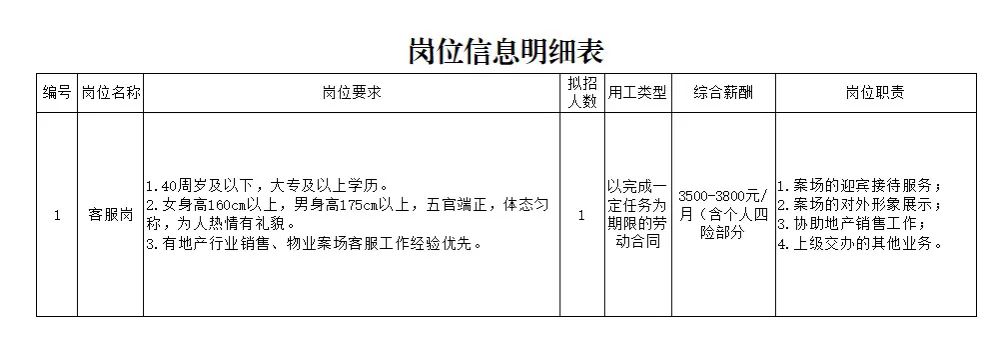 本次公开招聘岗位数1个,需求人数1人,采用以完成一定任务用工形式,具体招聘岗位及岗位要求详见附表。