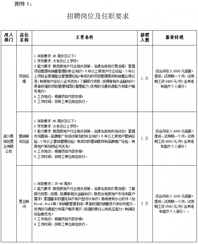 附件1:招聘岗位及任职要求