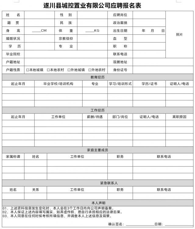 体检和考察合格人员由遂川县城控人力资源管理有限公司办理录用相关手续。