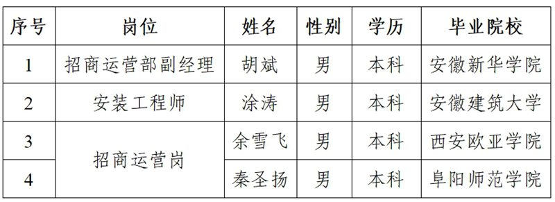 根据《安徽矾山文旅投资运营有限公司2025年上半年度社会招聘公告》的规定,经线上测评、笔试、面试、体检背调等程序,现将拟录用人员名单进行公示。