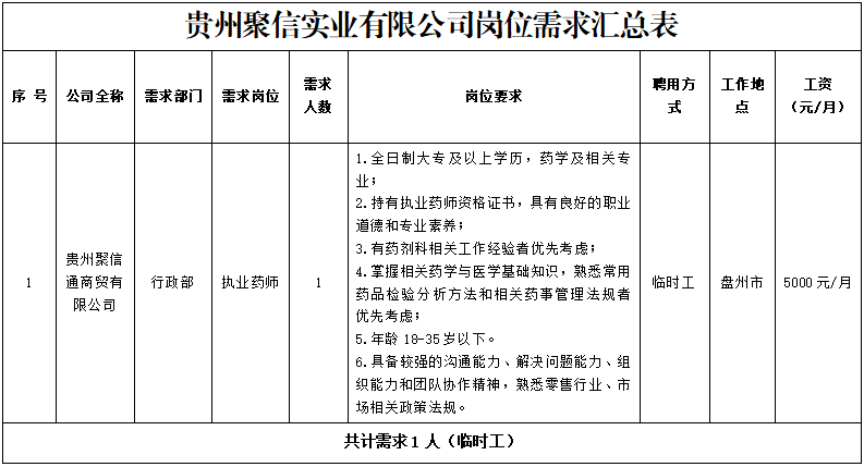 6.资格审查:报名资料由贵州聚信实业有限公司按照报名条件对应聘人员进行资格初审。