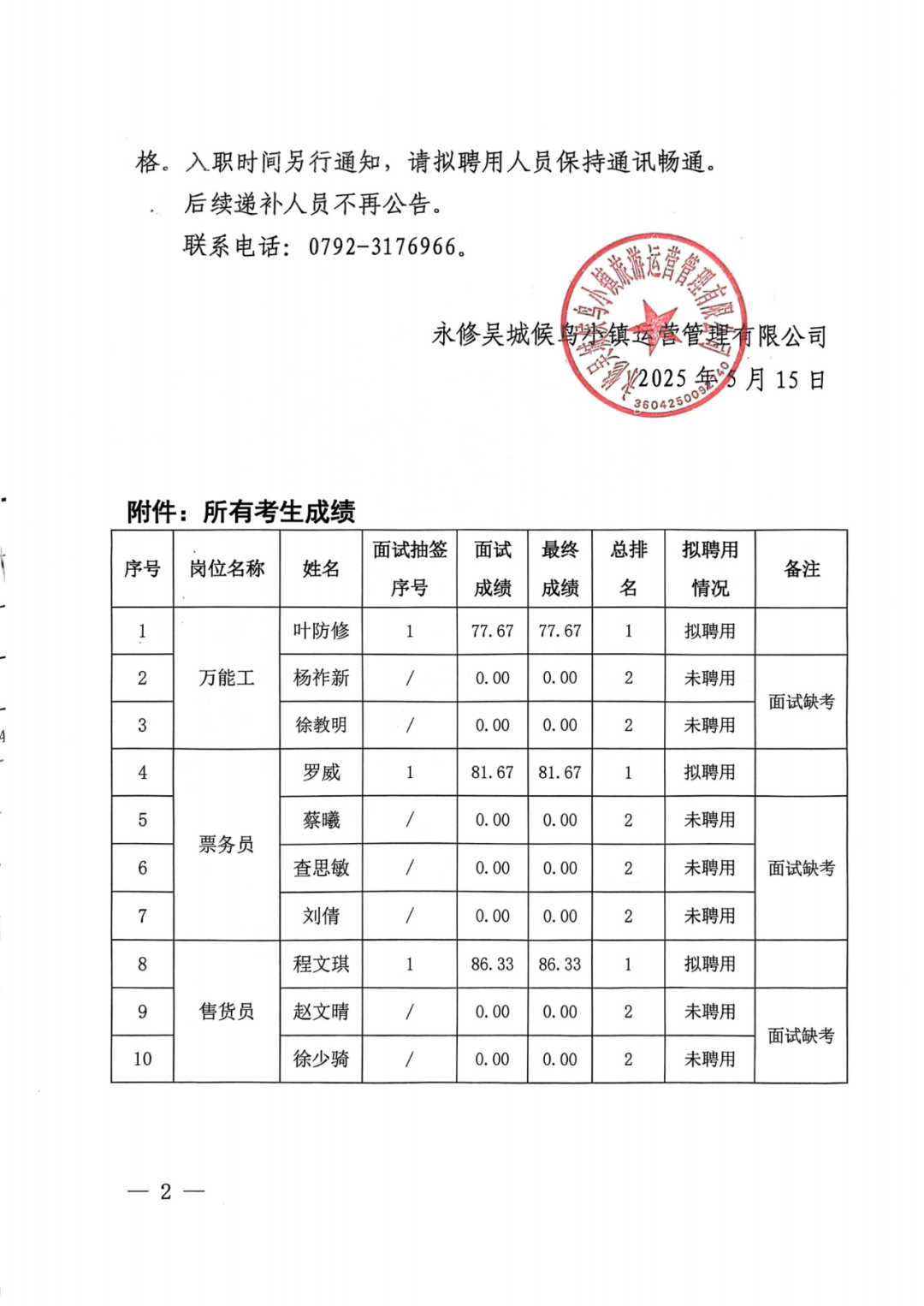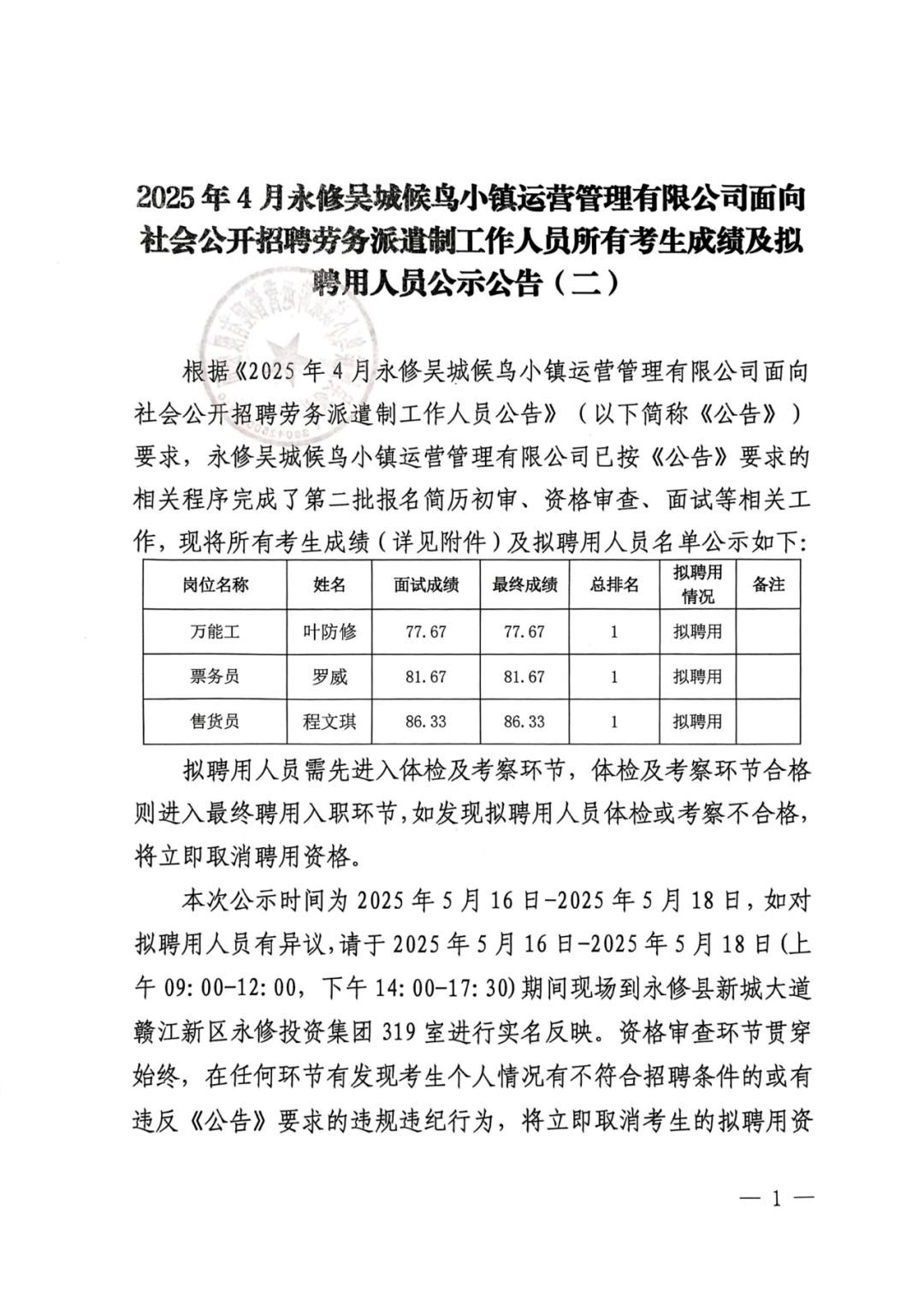标签: 永修吴城候鸟小镇 招聘劳务派遣 公示公告 成绩查询 拟聘用人员