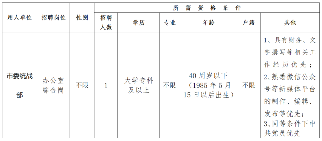 二、招聘基本条件