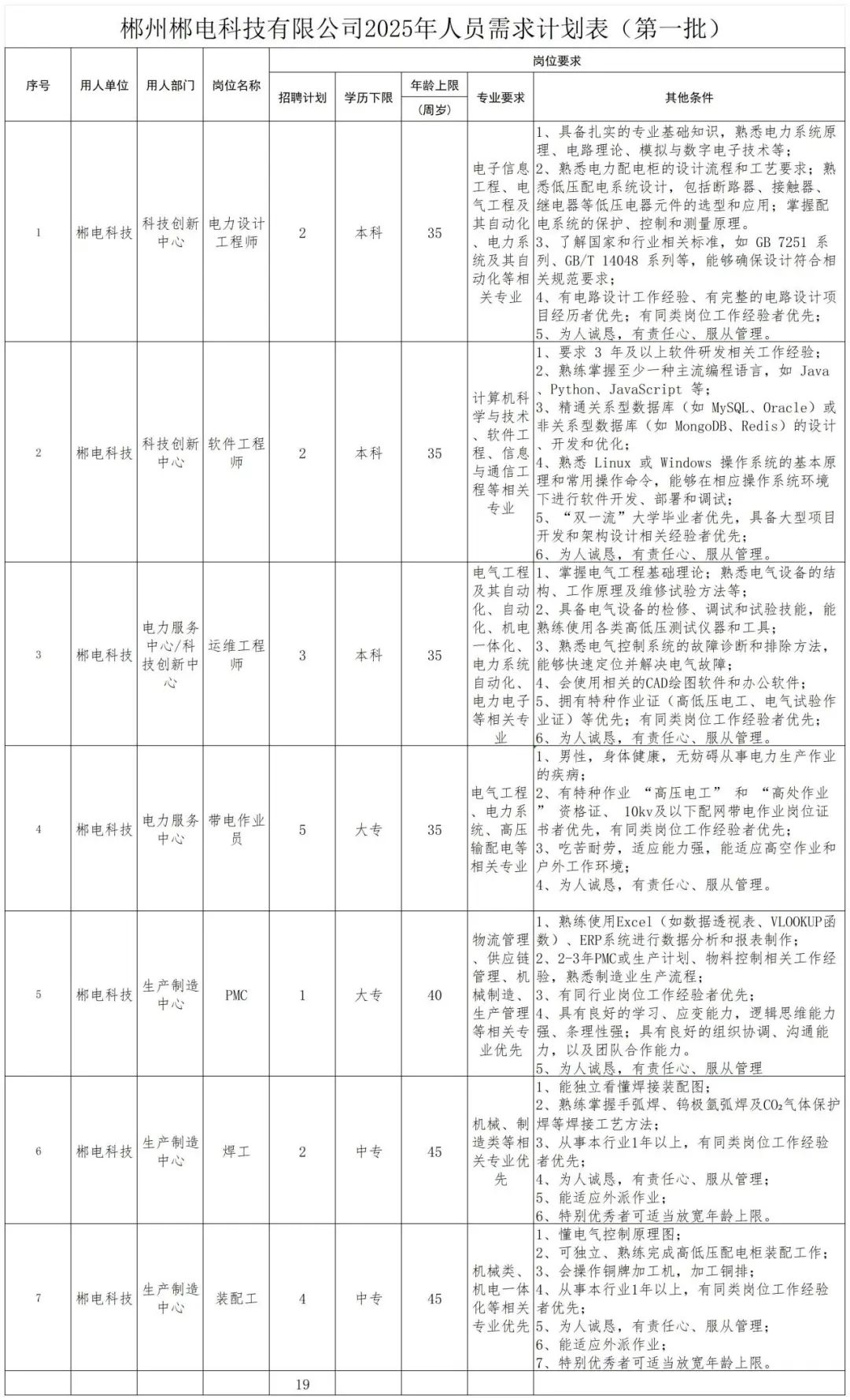 为顺应公司经营规模扩大、产能扩大发展的需要,计划招聘员工一批。详见各招聘岗位明细表。