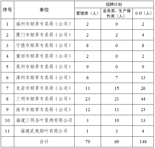 本批次计划招聘高校毕业生148人,具体计划如下: