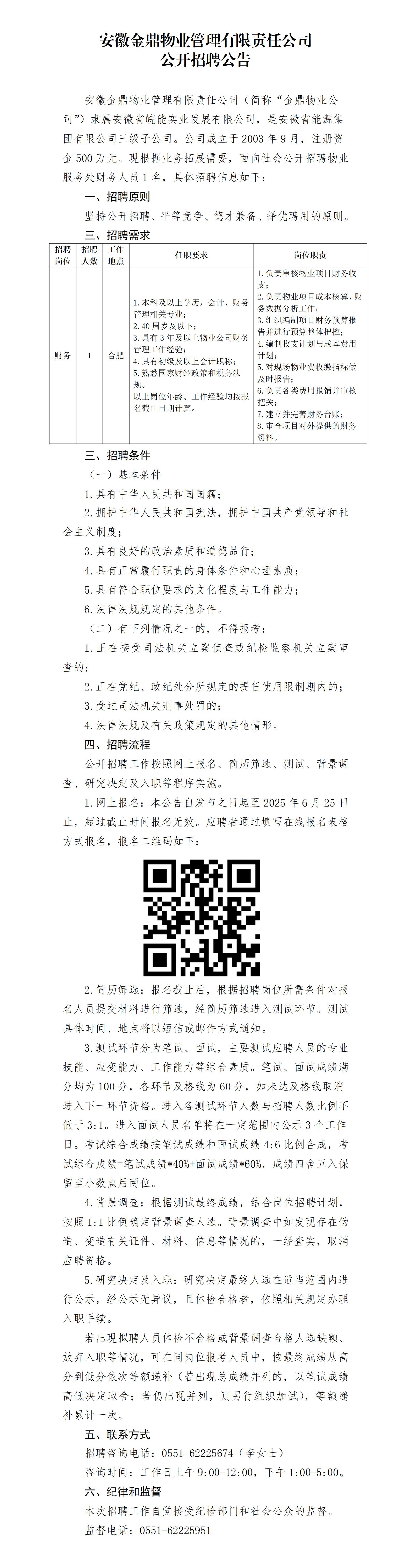 已结束 【合同制】安徽省金鼎物业管理有限责任公司公开招聘公告(招若干人,06月10日~06月25日报名)