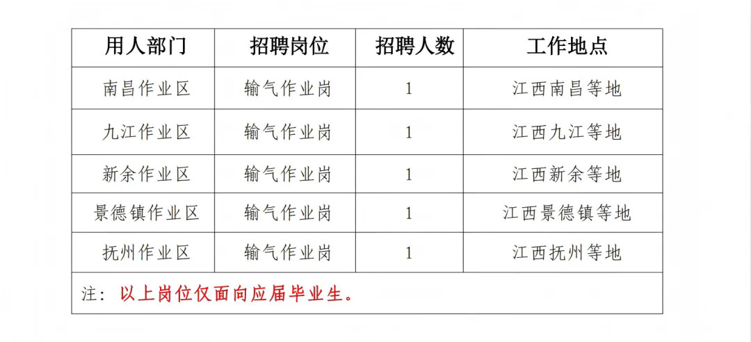 招聘岗位所需要的具体条件详见《江西省天然气管道有限公司2025年公开招聘岗位需求表》(见附件)。