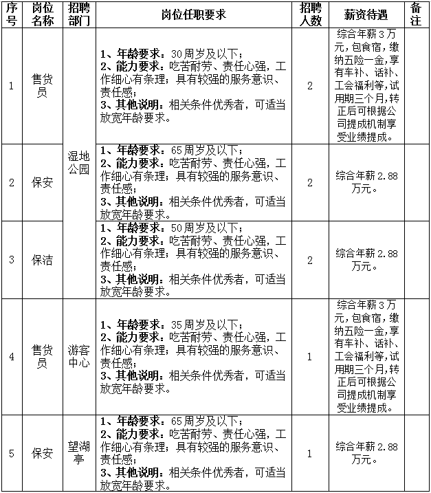 (3)报考人员需认真填写《永修吴城候鸟小镇旅游运营管理有限公司公开招聘报名表》(附件中表1及表2),连同报名附件打包压缩文件发送至电子邮箱:yxrsrcw@qq.com,邮件主题标注“吴城候鸟小镇+应聘岗位+姓名+联系电话”。